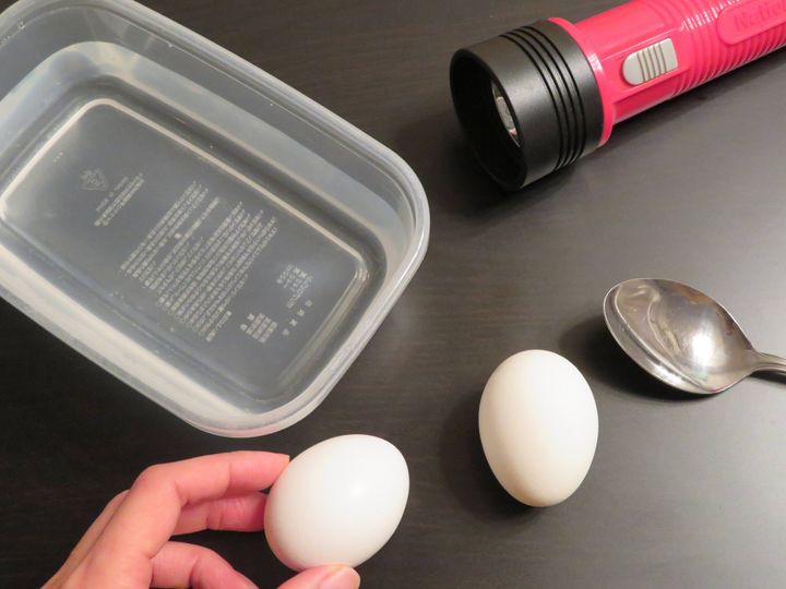 ゆで卵と生卵を用意し、中を割らずにどちらか見分ける方法を当ててみてください。