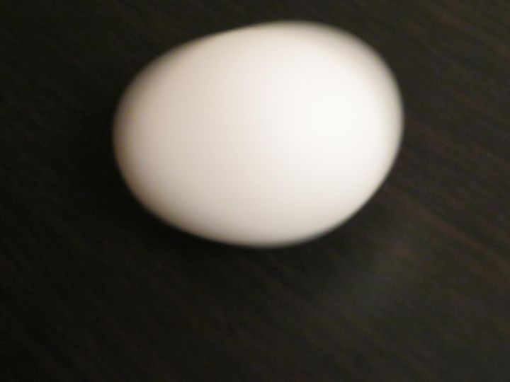 テーブルの上に卵をねせて置き、指で両端を持って回してみました。