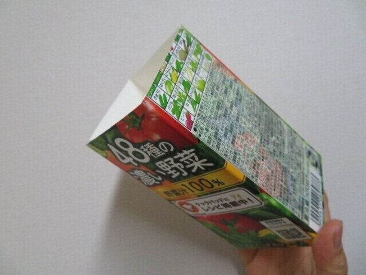 ふと視界に入って「これか」と思ったのが、かわかしている最中の野菜ジュースの空きパックでした。