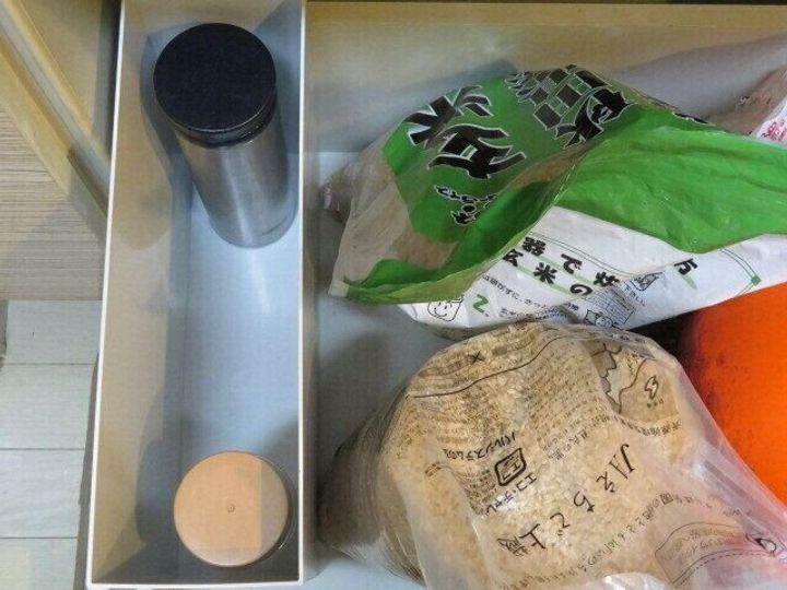 よく使う水筒が出払っている間、ファイルボックスの中身がスカスカになり出番の少ない水筒が倒れやすくなるのです。
