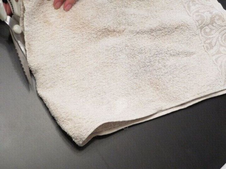 ぞうきんは使い古しのタオルを切りっぱなしのまま使い、最後はフライパンの油を吸わせたり家電製品の裏側にたまったホコリをぬぐい取ったりしてから捨てます。