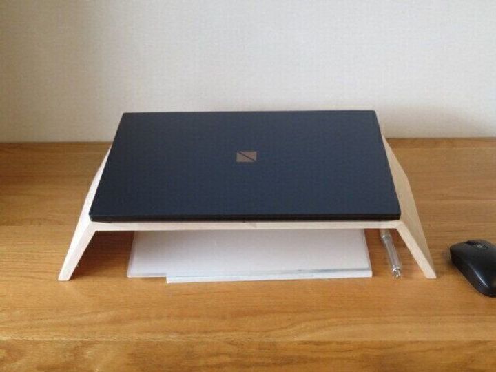 ノートパソコンなら本体を上に置いて目線を上げ、下には資料や筆記用具を置くのがいいのでしょう。