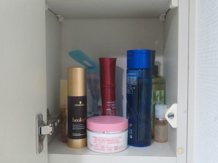 一番下の段に入っているのは、基礎化粧品とヘアケア用品です。