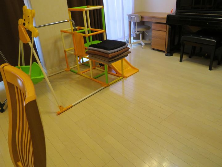 リビングの中心には、息子が2歳くらいの時に購入したプレイジムがあります。