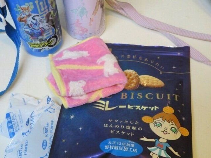 暑さ問題は深刻だったので、水筒にたっぷりお茶を入れ、保冷剤や汗ふきタオル、機嫌を取るためのおやつを用意しました。