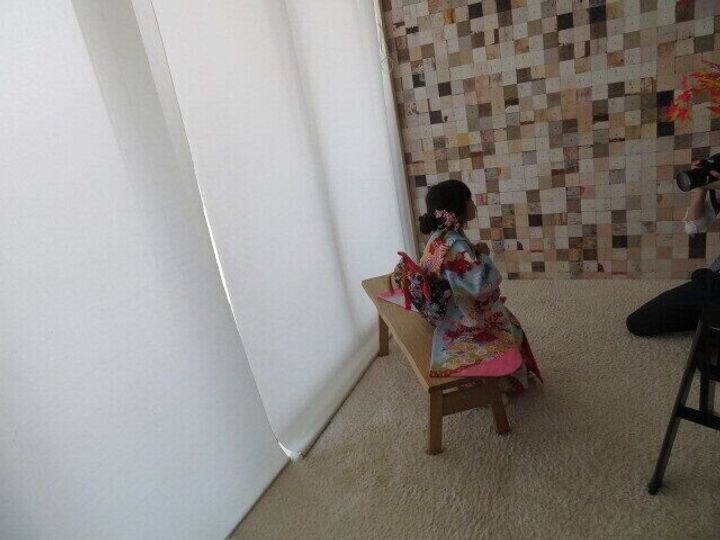 私達アラフォー世代の七五三写真といえば、白い背景の前で直立不動の姿勢になり正面を向き、無表情またはひきつった笑顔で写っているのがお約束。