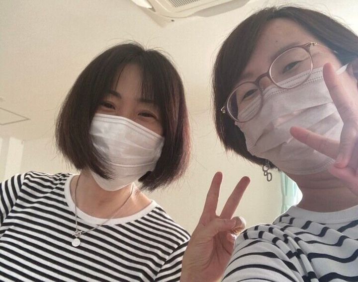 画像は、電車に揺られ富士市に遊びにきてくださったときに撮影した1枚です。左がおかさんで右が私、打合せなしのボーダーズでした。その日の記録は、おかさんのブログ(2022年6月)にも綴られています。