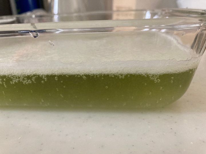 2回目は、粉寒天を混ぜて火にかけたときに充分に加熱できていなかったらしく、サイダーを入れようと思った時点で温度が50℃以下になっていました。そのため再度加熱してみたのですが、このときも、ジュレに近いものが出来上がりました。