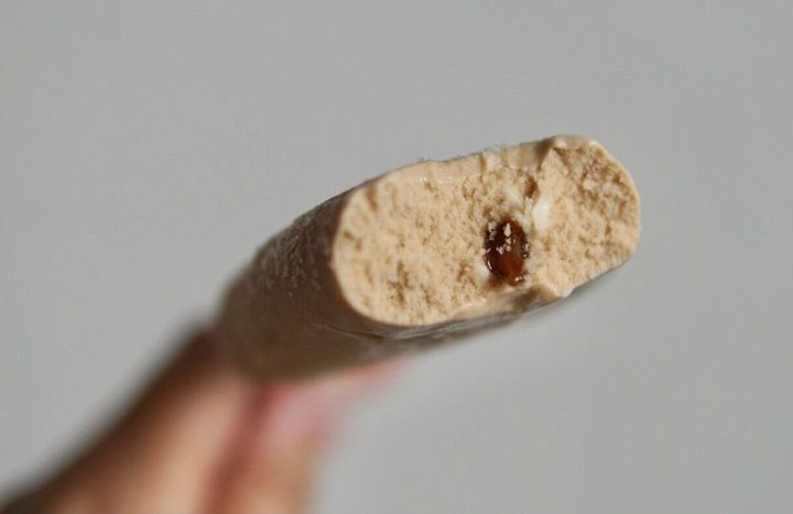 一口目をてっぺんからパクッと食べれる幸せ。四角いアイスだとこうはいきません。