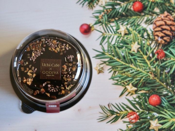 12月14日の新商品には、クリスマス用ケーキのミニ版が数多く販売されており、実は800円のケーキも3種類販売されております。その中でも、何件も探してやっと購入できたなど特に話題になっているのが、Uchi CaféとGODIVAがコラボした「プティ ノエルショコラ」。筆者も、販売されてから6日目でやっと目にすることができました。コンビニスイーツが800円で販売され、それが売切れ続出になる時代がくるとは驚愕です。