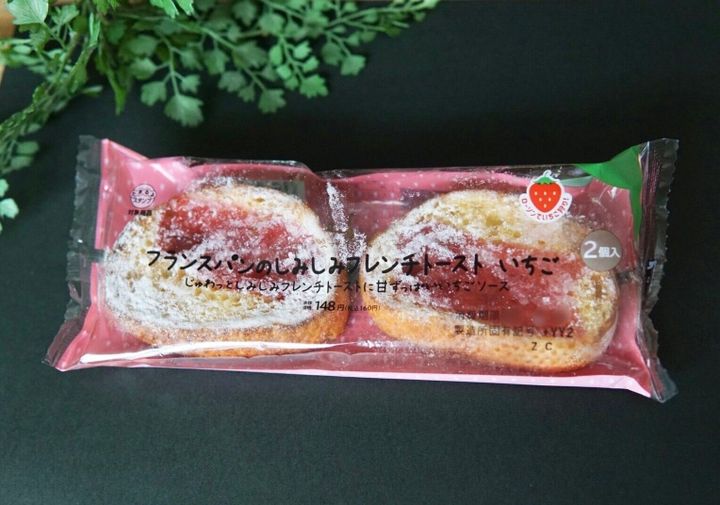 定番の「フランスパンのしみしみフレンチトースト」にいちごソースがしっかりかけてあるのに価格は10円しか変わらないのが嬉しいです。ベーカリー商品ではありますが本格的なフレンチトーストにも負けないくらい絶品。甘みに苺ソースの酸味がプラスされることで、より味に奥行を感じます。少しトーストすると、外はカリッ中はよりとろりとなって更に美味しくいただけます。