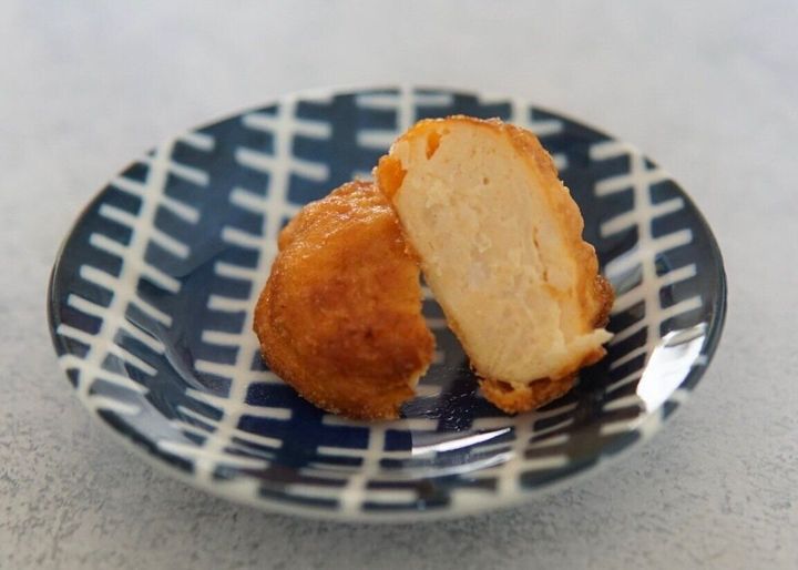 1粒でレギュラー・レッド・チーズ3つの味ってどんな感じだろうとカットしてみると、中はほんのりレッド味の唐辛子の赤さが伺えます。衣はレギュラーで、中はレッド&チーズということですが、香りはチーズに近いです。辛さはチーズのまろやかさにおされて控えめに感じますが確かにそこにいます。ちなみに、からあげクン大好きな小学生の息子は、チーズの味がして美味しいと言っていました。