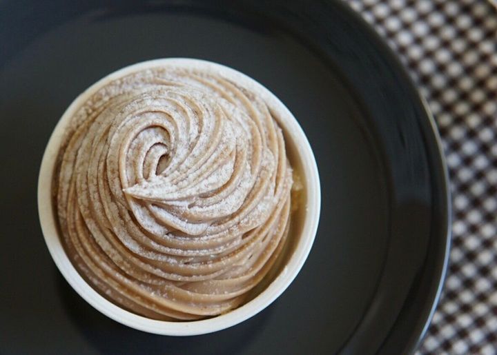 まずは、見た目から。カップにもりっと絞られたマロンクリームにかけられた粉糖、この美しさは必見です。