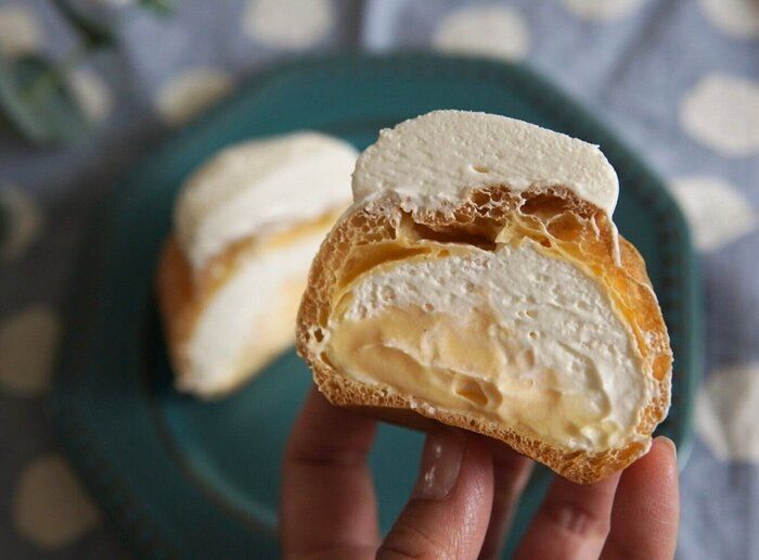 同時に発売された、おぼれクリームのシューも、上に中に、クリームたっぷりです