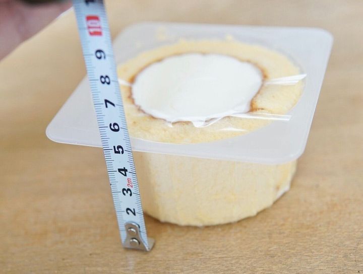 高さを計ってみたら、約5cmありました。カロリーを計算してみると、いつものプレミアムロールケーキが219kcalに対し、「×2」は434kcal、ほぼ2倍なので横幅も同じだと思われます。単純に高さが2倍になっただけ、と言ってしまえばそうかもしれませんが、いただいてみてクリームをすくうときのたっぷり感覚が全然違うなと感じました。一番最初にクリームだけすくって食べて、二口目から生地と一緒に食べたい派なのですが、スプーンですくったときの底がない感じに充足感を感じました。生地とクリーム、たっぷりすくって口の中に入れる感じは、ロールケーキではなくショートケーキをいただくような感覚。ケーキ感がアップします。