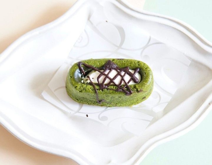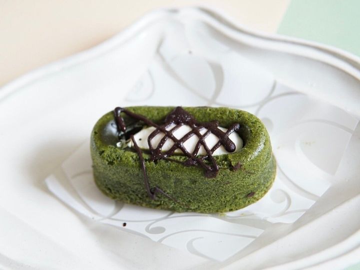 いただいてみると、抹茶の苦みと濃厚な甘さが口の中に広がり、抹茶好きにはたまらない味わいだなと感じました。ねっとりともしてるけれどホロッとほどける、なんともたまらないバランスの良い生地にふわっとしたクリーム、上にほどこされたチョコソースがパリッと噛むたびに割れて良いアクセントになっています。スイーツの中では小ぶりではありますが、ずしんと濃厚な味わいに1個で大満足できることと思います。
