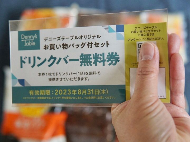 更には、一部店舗を除く、デニーズ各店で利用できるドリンクバー無料券が2枚と、折り畳んでコンパクトに持ち運びができる、オリジナルお買い物保冷バッグがセットでついています。