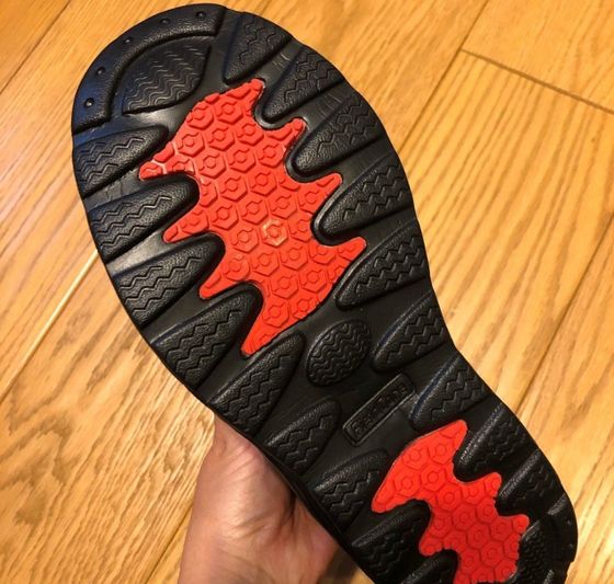 ウェーブカットソールで滑りにくい仕様になっています。ここまでの機能がついているのに、片足250g、両足あわせても500g。とても軽いんです。