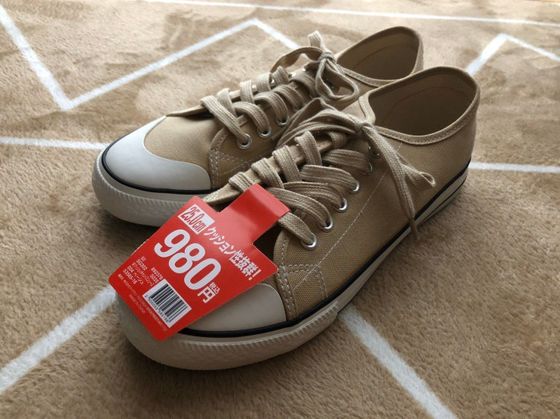 ネットで話題になっているのを見かけたことがあります。某有名キャンバスシューズにそっくりなのにお安いと。しかし、税込980円にはまいりました。ベージュのキャンバスシューズはジーンズ、黒いスカートやその他色々、とにかく使い勝手がいいアイテムだと思います。筆者が特に推したいのは、さすがワークマン、クッション性抜群で疲れにくいところと、靴紐がベージュだというところです。同色だと、よりおしゃれ感が増す気がするのは筆者だけでしょうか?