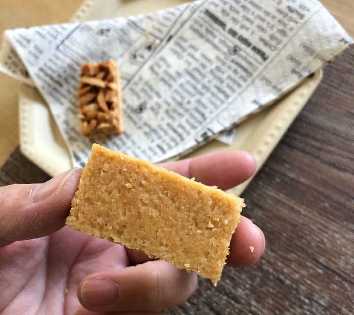 下を支えるクッキー部分は、ショートブレッドのようなバター風味とサクサク食感がたまりません。アーモンドと非常に相性がいいと感じました。