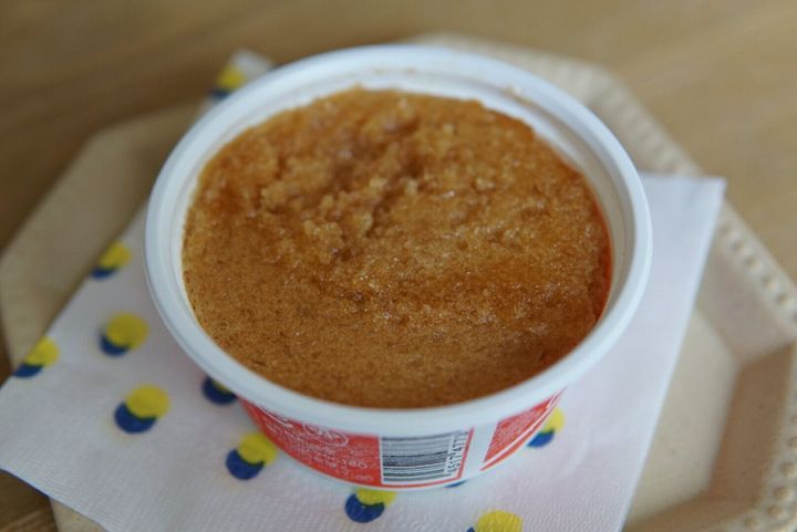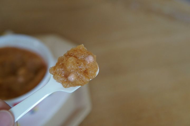 蓋を開けると、少し色が濃い目のコーラ氷が目に飛び込みます。あれ?ラムネがない?と思いましたが、少しスプーンで削ってみると