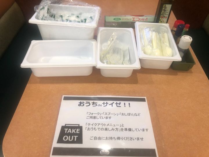 我が家の最寄りの店舗では、店内営業もちゃんと席間隔を開けて座れない席を作ったり、従業員の方がこまめにドアのぶを消毒している姿が見られました。予防策を立てて運営されているんだなと思います。