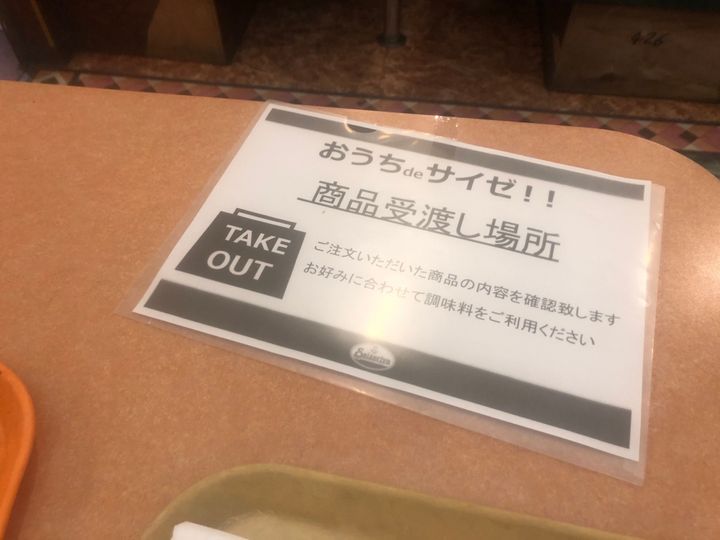 我が家の最寄りのサイゼリヤでは商品受け渡し場所が設置されていて、その席で頼んだ商品の確認をしました。