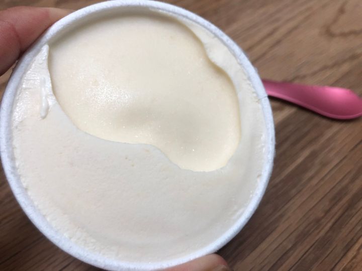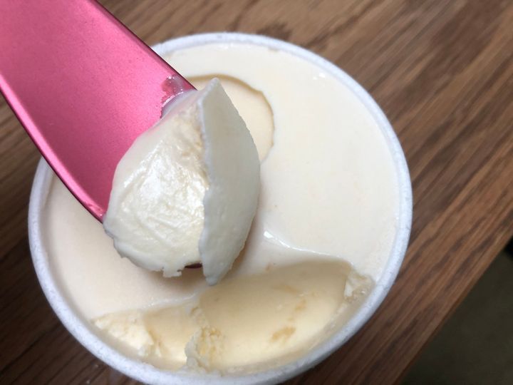 あれ?白い!一見はミルクアイスのようです。よくある果肉のリボンのようなものは見られません。