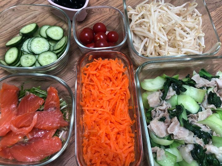 サラダや和物はこの容器で直接作ってそのまま冷蔵庫や食卓へ