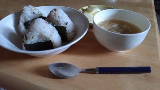 我が家の場合、主食がご飯の時は、おにぎり・ふりかけご飯・納豆ご飯・お茶漬け+お味噌汁+ウィンナーや卵+果物(バナナやリンゴ)を、パンがメインの時は、総菜系とスイーツ系の2種類と野菜スープ+果物を用意しています。