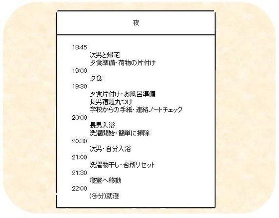 帰宅後のタイムスケジュールは大体このようなものになります。