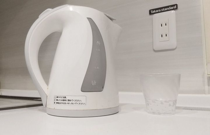 飲料水を沸騰させ、熱湯をカップに注ぎます。カップの1/3程度まで注いだらくるくる回し、捨てます。