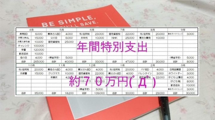 面倒くさくて続けにくい家計簿も、1年間つけていれば、いつどのくらいの金額がかかるのか、予測することが出来ます。