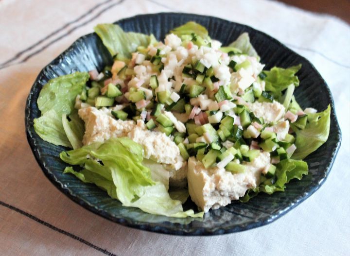 食べ過ぎた時の救世主!ちぎって刻んで和えるだけ。ヘルシーなのに、食べごたえ抜群で大満足なおとうふサラダ。