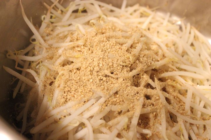 もしあれば、切干大根や油揚げを加えるとおいしいのですが、なければもやしだけで大丈夫。