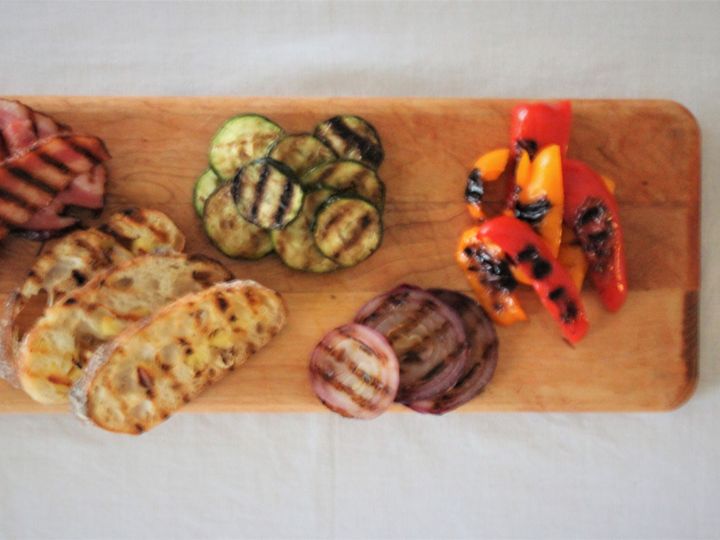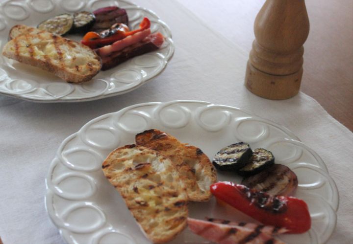 フライパンにオリーブオイルを熱し、余り野菜やソーセージ、ベーコン、パンなどを並べてとにかく無心に次から次へと焼いていくだけというもの。