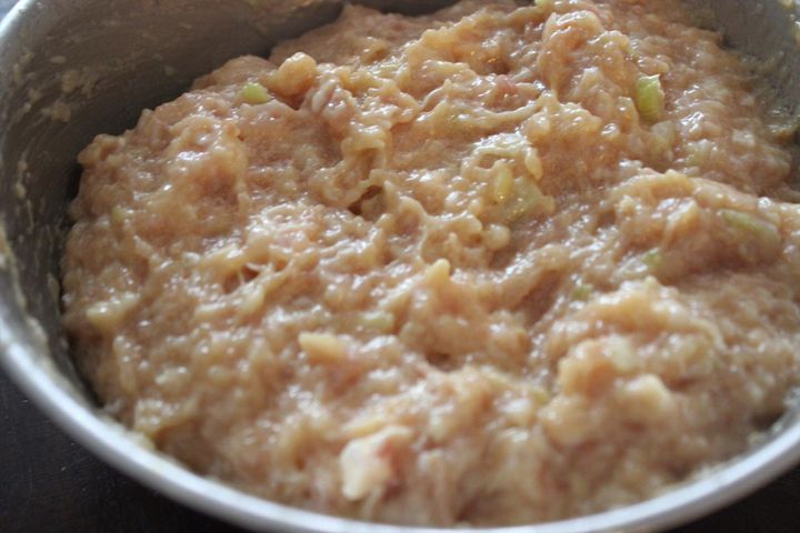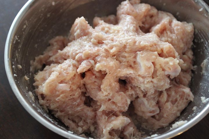 鶏団子に加える際は、今回ご紹介した「もも挽肉400g、むね挽肉400g」を「もも挽肉300g、むね挽肉300g、鶏なんこつ200g」に代えて作りました。なんこつはフードプロセッサーで細かく刻んで使いました。