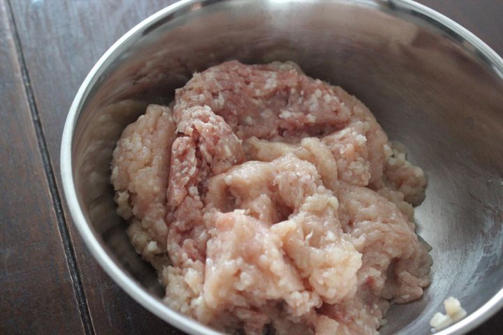 1.挽肉2種類と塩をボウルに入れてよく練りこんで馴染ませる。