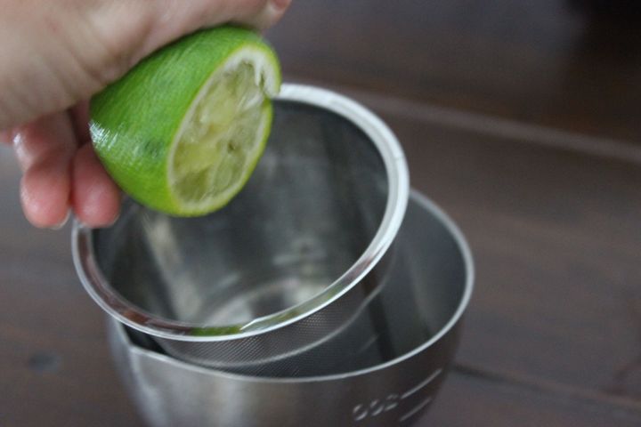 4.柑橘(今回はすだち使用)を絞る。皮の千切りもサラダに加えたい場合はここで刻んでおく。