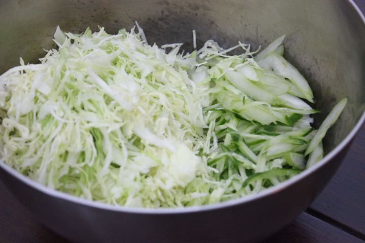 1.きゃべつときゅうりは千切り、セロリは斜め薄切りにする。
