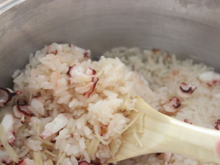 お米とたこを一緒に炊く方法や、最初にたこを煮て煮汁で炊いたごはんと最後に合わせる方法、干しだこを使って炊く方法…など実は奥が深いようですが、私は生姜たっぷりでシンプルにさっぱりと炊く方法が好きです。