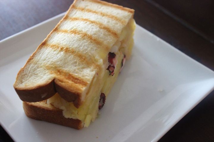 次におすすめするのが、ゆでだこをマッシュポテトとあわせてトーストで挟むサンドイッチ。