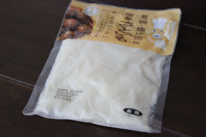 国産里芋の皮むき、カット、下茹でがすべて済んでいる商品で、常温保存が可能なアイテム。主婦にとってメンドクサイことがすべて済んでいる神商品なんです。