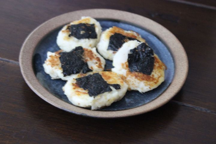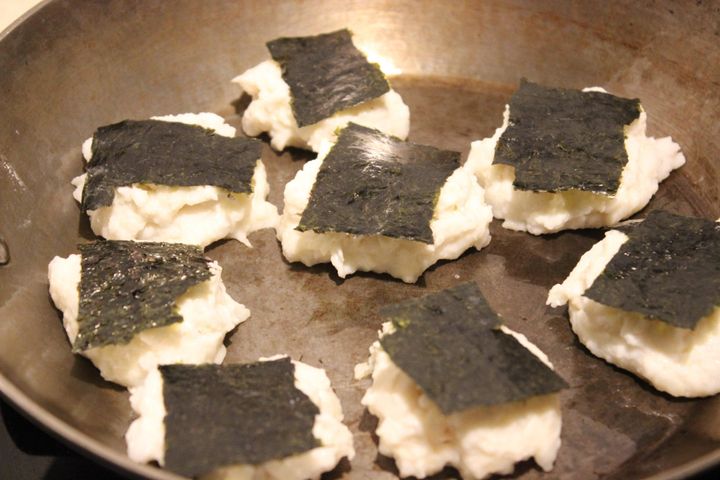 見栄えをよくするためと風味をだすために、私は片面に焼き海苔をつけました。