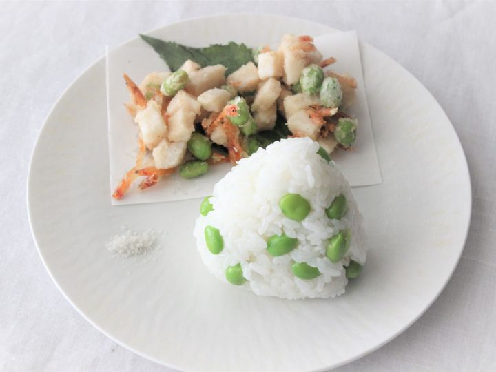 炊きたてのごはんに混ぜ込めば、栄養価もおいしさもワンランクアップして豆ごはんに。