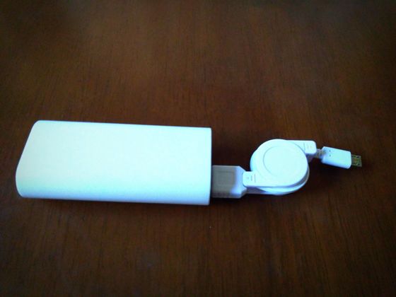 上の写真はダイソーで買ったリールケーブルですが、白いモバイルバッテリーと合うので、セットにして持ち歩いています。
