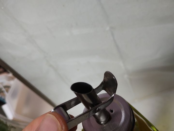 筆者は今まで油は購入した時の容器のまま使用していました。そこからフタを開け、油を注ぐ。