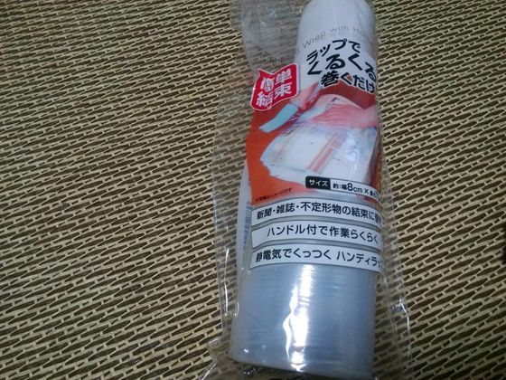 その名も「くるくる巻くだけ簡単結束!ハンディラップ70m」という商品。(税抜き100円)見つけた瞬間、買い物カゴに2つ入れました。