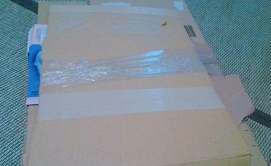ダンボールが固定出来たらラップをしっかり押しながら切り取ると完了!!