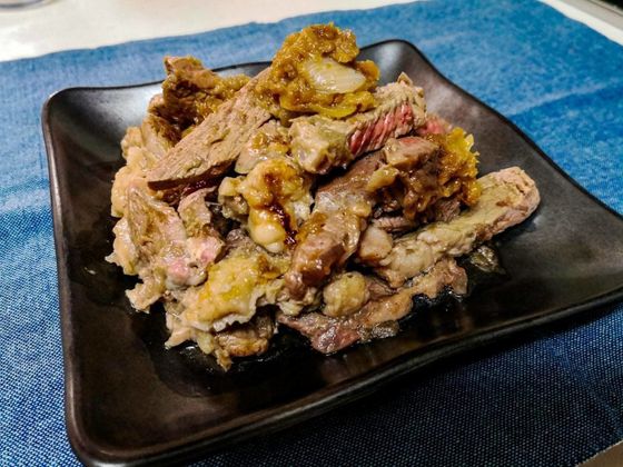 ⑦熱々のソースをステーキ肉にかけて完成!!